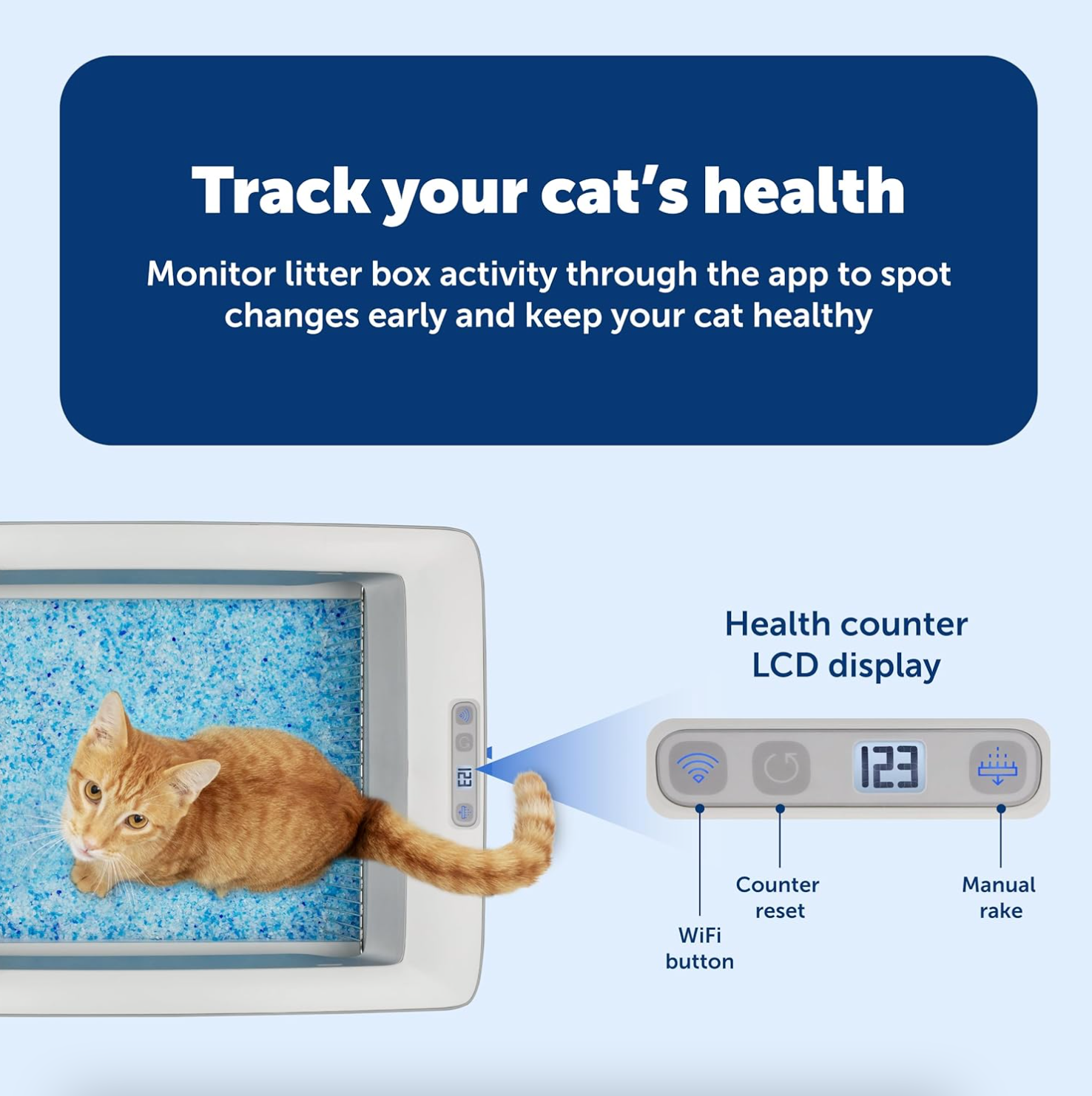 - Track Your Cat's Health: An integrated health counter monitors your cat's litter box usage, allowing you to note any irregularities that may signal possible health concerns